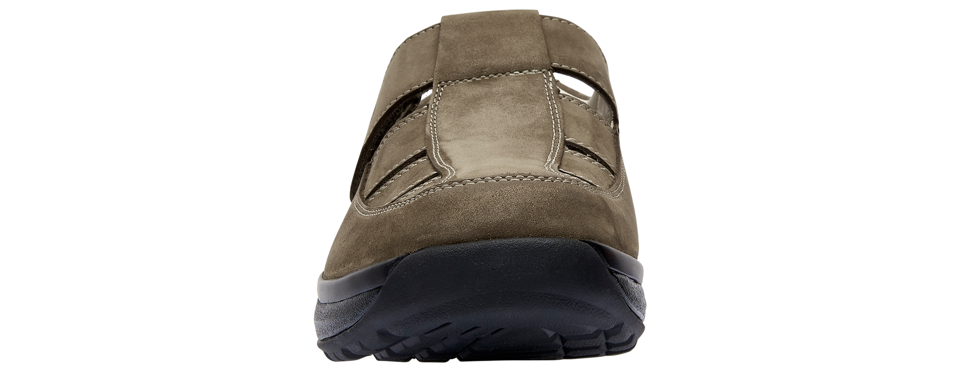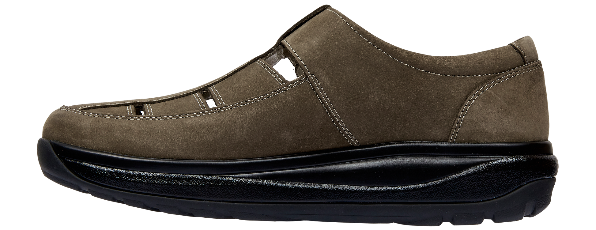 Sandalen aus Nubukleder mit Klettverschluss am Rist. Die stark dämpfende Sohle entlastet Ihre Rückenmuskulatur und Gelenke optimal. Geeignet für Menschen mit empfindlichem Rücken sowie mit Füssen und Gelenken, die täglicher Belastung ausgesetzt sind.