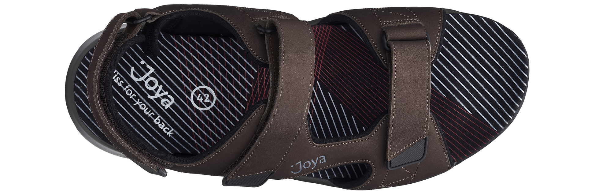 Sportliche Outdoor-Sandale aus Nubuk, mit weich gepolstertem Neoprenfutter und verstellbaren Klettverschlüssen an Ferse, Rist und Vorderfuß. Ausgestattet mit einem ergonomischen Fußbett, das mit weicher Mikrofaser umhüllt ist. Ausgestattet mit der Joya Active Sohlentechnologie, die eine ideale Kombination aus Dämpfung, Rückfederung und Stabilität garantiert. Für dynamische Menschen, die immer in Bewegung sind und Komfort auf jedem Untergrund brauchen.