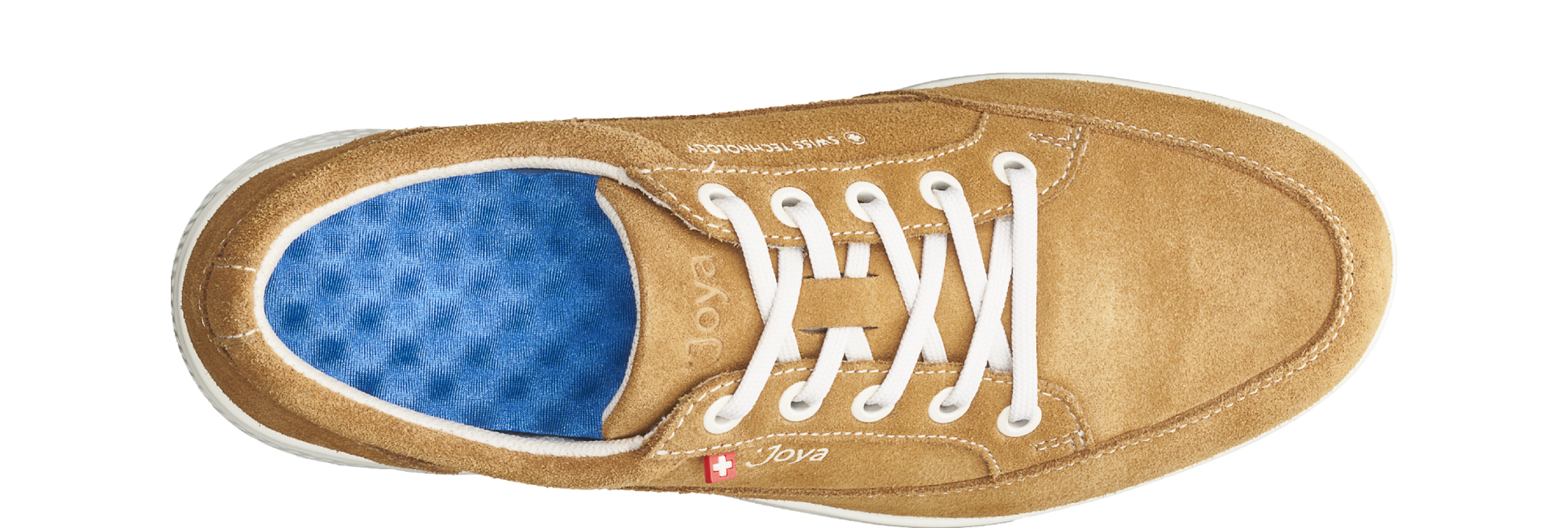 Unverzichtbarer und vielseitiger Schnürschuh mit Obermaterial aus geschmeidigem Veloursleder und atmungsaktivem Mesh-Futter. Mit weich gepolstertem Kragen und Zunge für ultimativen, kompromisslosen Komfort. Die ideale Wahl, um Ihren Alltag entspannt zu genießen. Abgerundet wird das Ganze durch die außergewöhnliche Joya Nuvola Sohlentechnologie, die aus einer weichen und elastischen Zwischensohle und einer leichten Gummilaufsohle besteht.