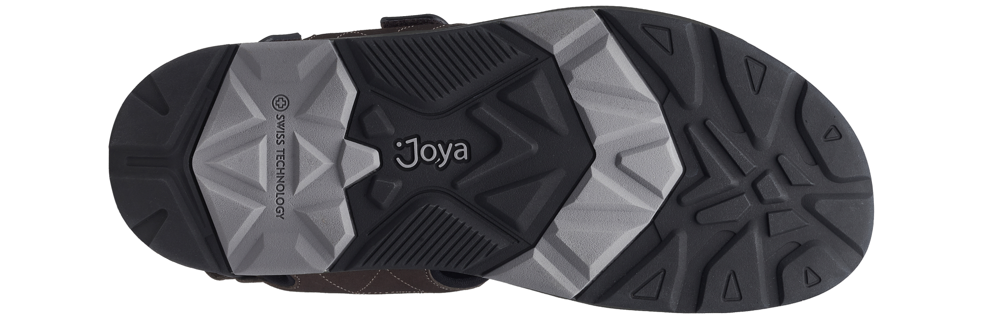 Sleek nubuck oudoor sandal with smoothly padded neoprene lining and adjustable velcro straps on the heel, instep and forefoot. Fitted with an ergonomic footbed wrapped with soft microfiber. Implemented with the Joya Active sole technology that guarantees an ideal combination of cushioning, rebound and stability. For dynamic people always on the move, who need comfort in action and performance on every surface.