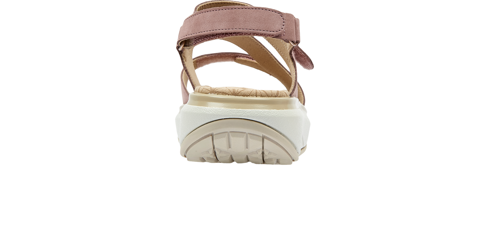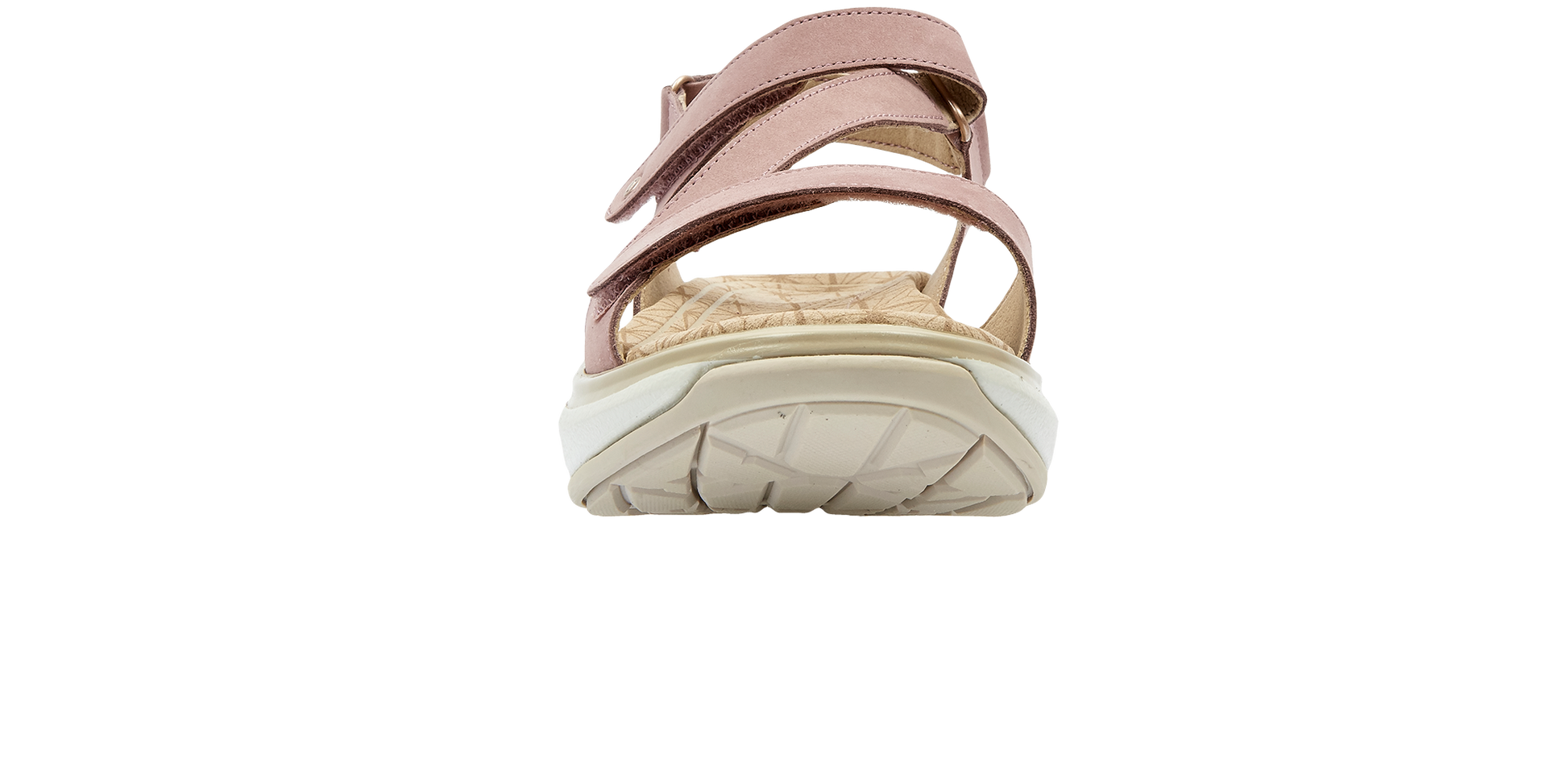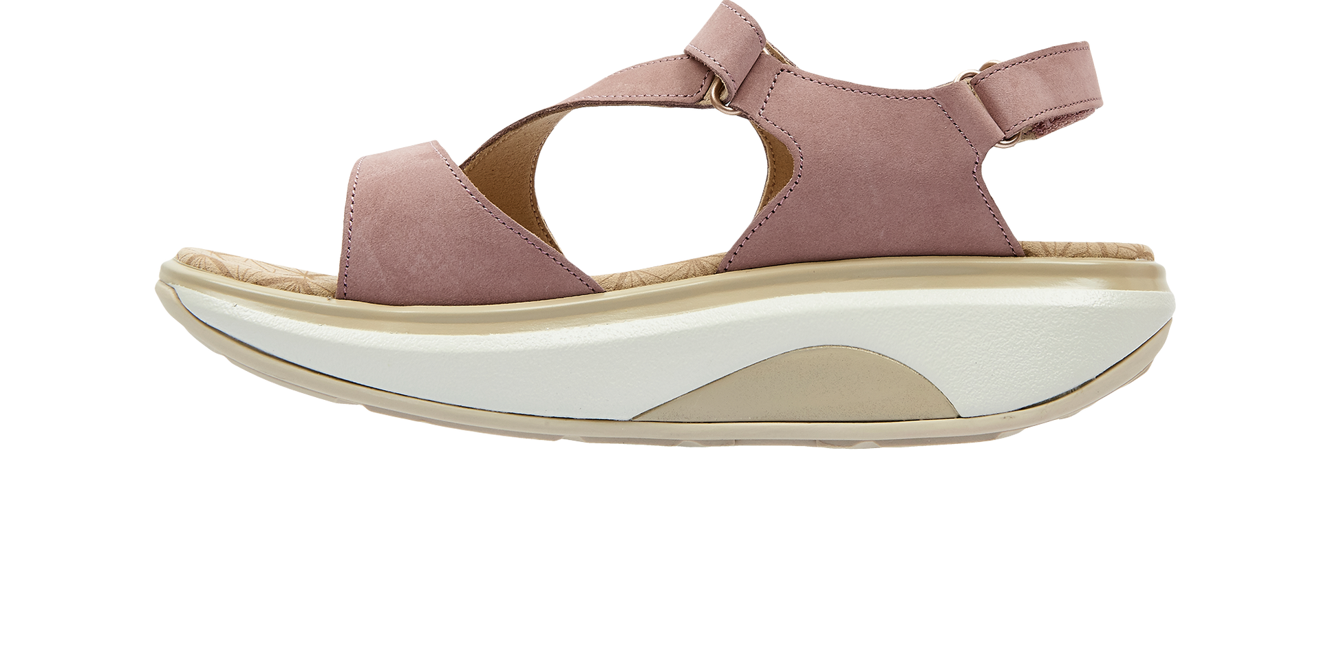 Sandal with upper made of soft nubuck. Has an adjustable straps on the heel, instep and forefoot. The footbed has a normal width and covered with soft microfiber material. Curve sole provides roll movement that forces the body to balance and activates muscles in the back and the feet. Suits for a people that wish to train a good posture and vigorous exercise.