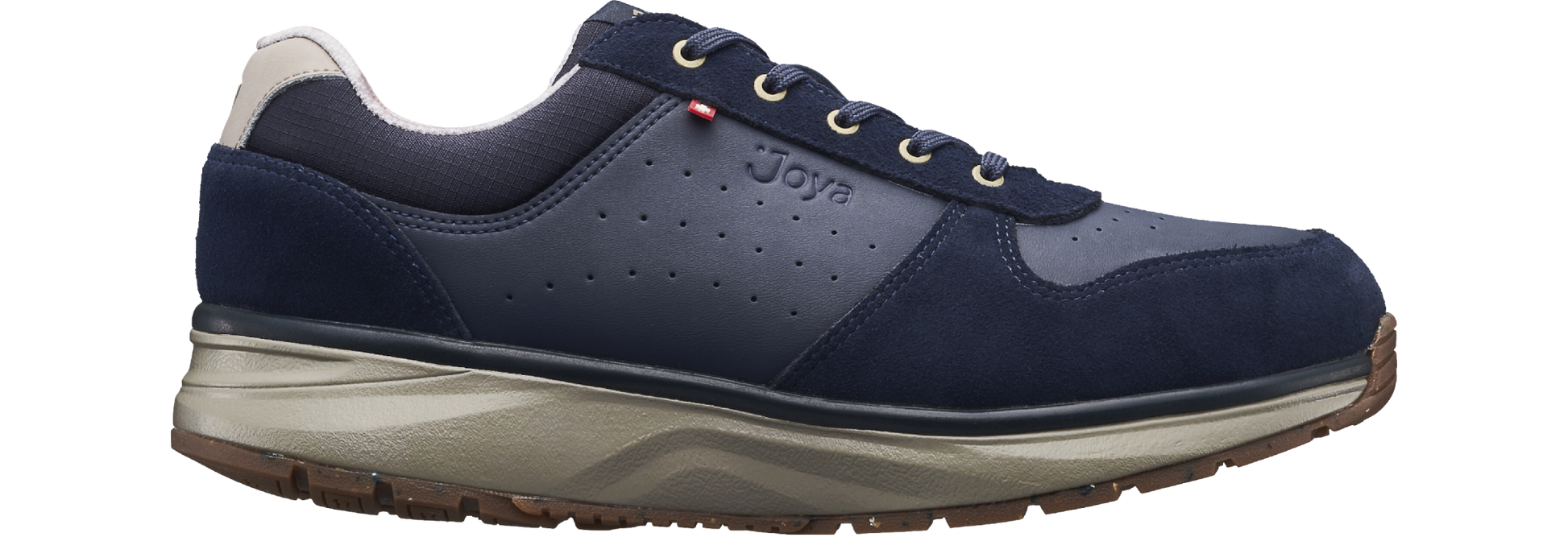 Zapatillas con cordones con un aire retro y un toque elegante. Parte superior combinada de cuero, cuero aterciopelado y malla de nailon con forro de malla suave y transpirable. Implementado con la tecnología de suela Joya Active que garantiza una combinación ideal de amortiguación, rebote y estabilidad. Para gente a la moda, siempre en movimiento y que nunca renuncia a la comodidad.