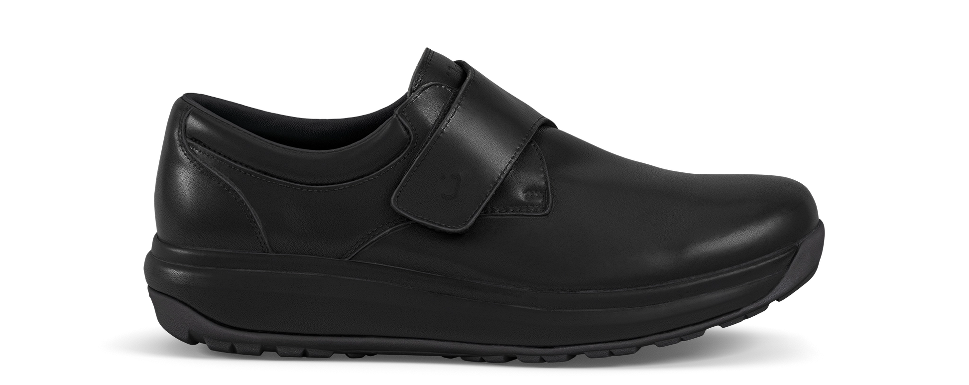 Zapatos derby de piel de plena flor con cierre de velcro en el empeine, puntera lisa y forro de malla suavemente acolchado para una comodidad superlativa en el antepié. Presentado con la tecnología de suela Joya Senso que garantiza un excelente efecto de amortiguación y una distribución equilibrada de la presión y brinda comodidad y alivio óptimos para el estrés diario de la espalda, las articulaciones y los pies.