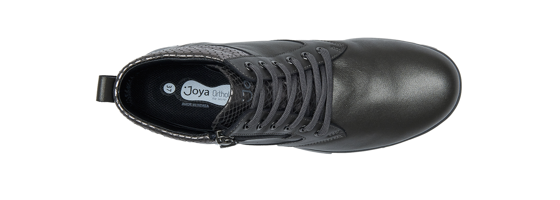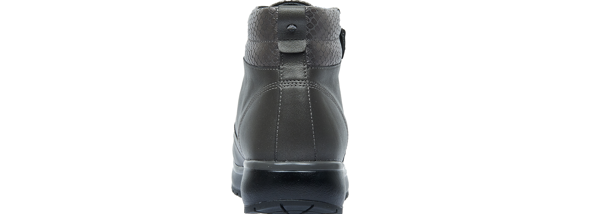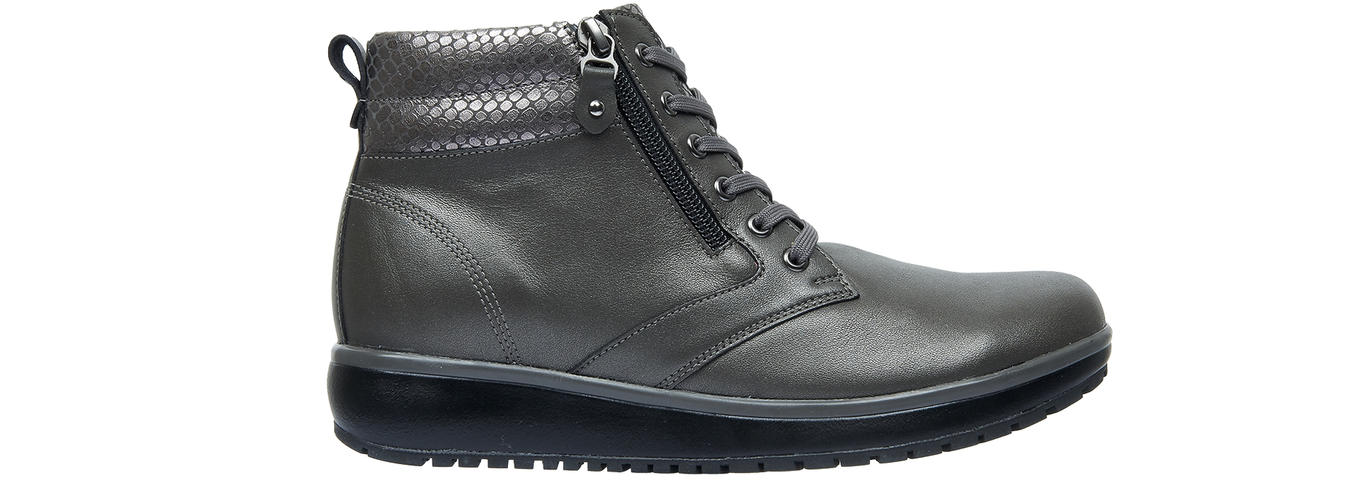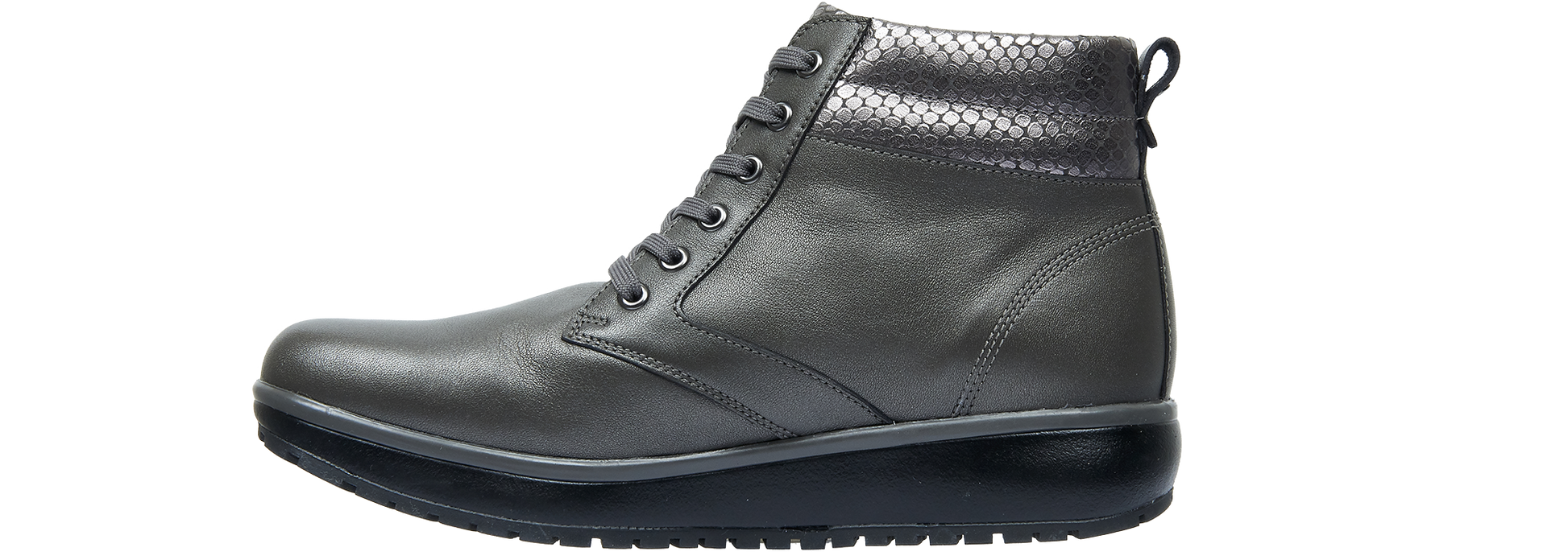 Bota media caña en piel plena flor color perla con forro de piel. Este estilo tiene una cremallera en el lateral del cordón delantero que ayuda a ponerse y quitarse los zapatos con facilidad. El suave forro acolchado en la parte delantera proporciona un ajuste suave y cómodo. Especialmente indicado para personas con una zona amplia y sensible en el antepié. La suela con un fuerte efecto amortiguador proporciona un alivio óptimo para los músculos y articulaciones de la espalda. Indicado para personas con espalda sensible y con pies y articulaciones expuestas al estrés diario.