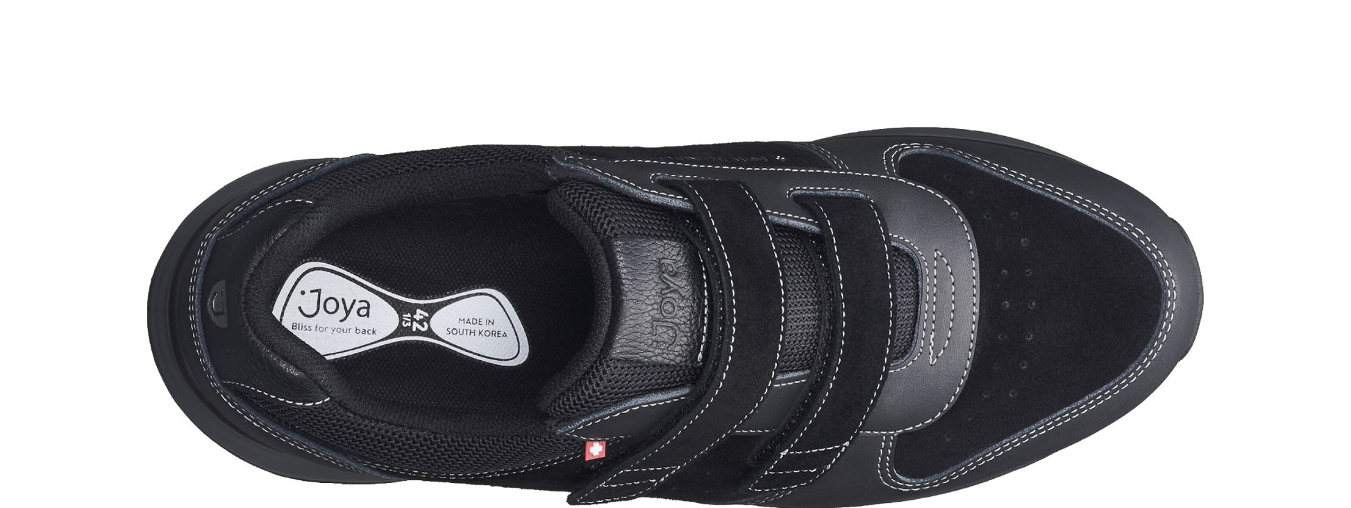 Baskets en cuir, velours et nylon mesh, dotées d'une double fermeture auto-agrippante pour un chaussant facile et un ajustement précis et sécurisé. Col et languette légèrement rembourrés. Dotées de la technologie de semelle Joya Active, elles garantissent un équilibre parfait entre amorti, rebond et stabilité. Pour les personnes actives qui ne font aucun compromis sur le confort.