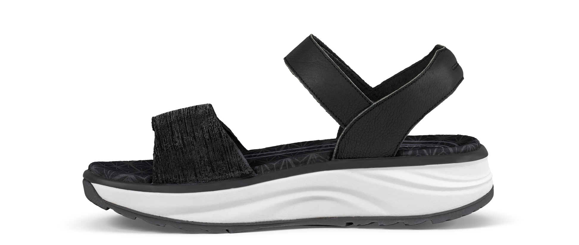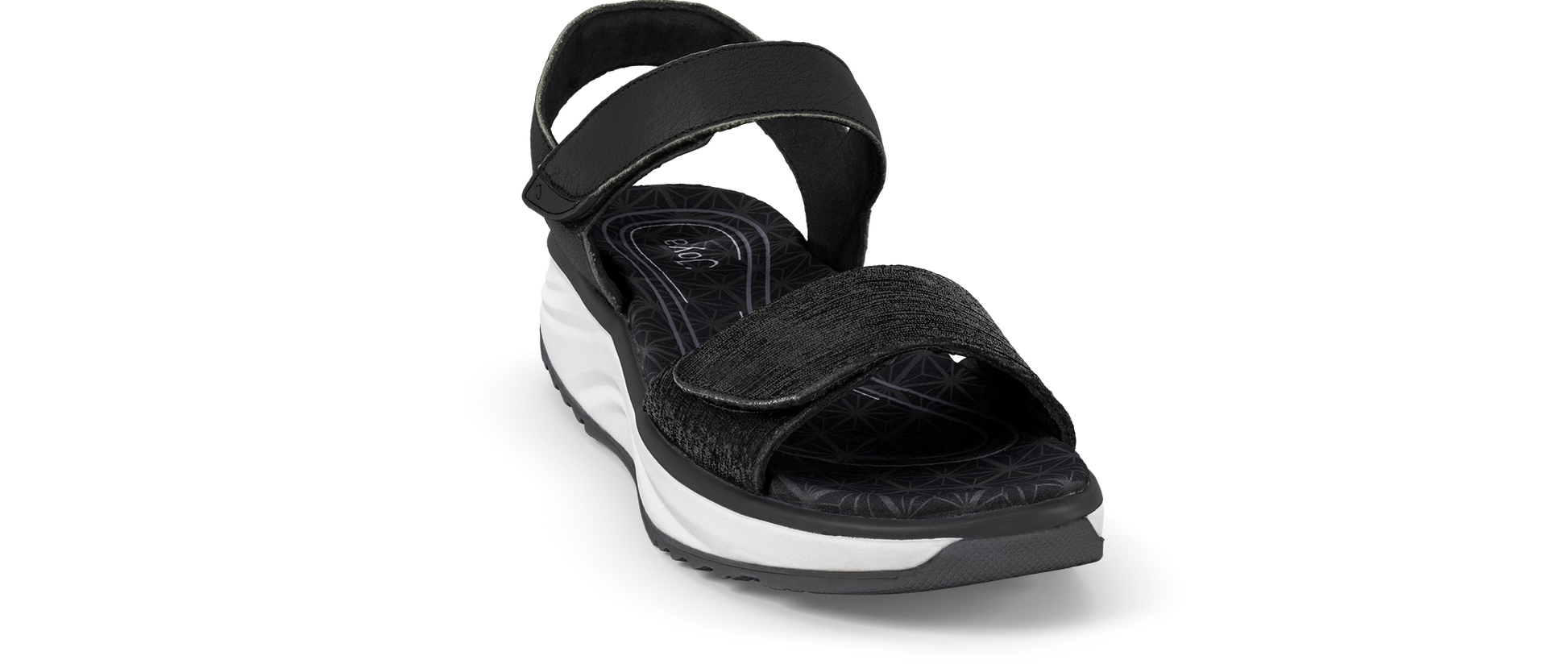 Sandale en cuir pleine fleur raffiné et velours scintillant, avec brides velcro réglables sur le cou-de-pied et l'avant-pied. Dotée d'une semelle intérieure ergonomique recouverte de microfibre douce et veloutée, elle est dotée de la technologie Joya Active qui garantit une combinaison idéale d'amorti, de rebond et de stabilité. Pour les personnes dynamiques, toujours en mouvement, qui recherchent confort et performance sur toutes les surfaces.