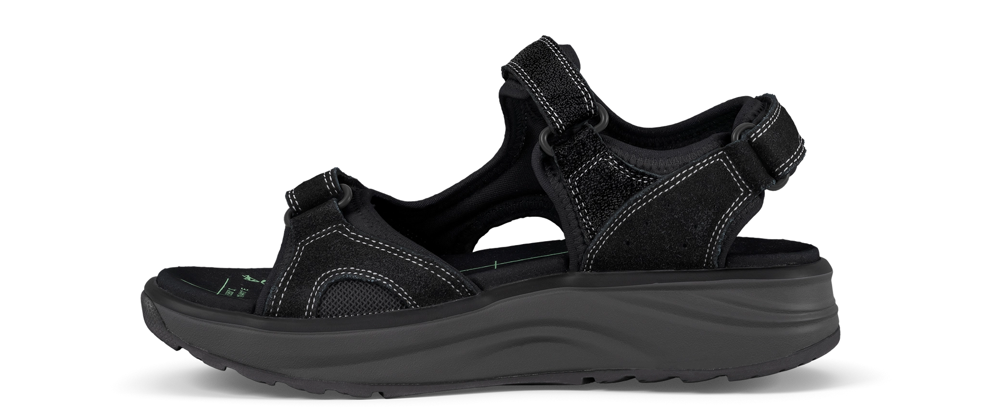 Sandalo da esterno in suede e mesh, con fodera in neoprene morbidamente imbottita e cinturini regolabili in velcro su tallone, collo del piede e avampiede. Dotato di un plantare ergonomico rivestito in morbida microfibra vellutata. Dotata della tecnologia Joya Active, la suola garantisce una combinazione ideale di ammortizzazione, ritorno di energia e stabilità. Per persone dinamiche e sempre in movimento che cercano comfort in azione e prestazioni elevate su ogni superficie.