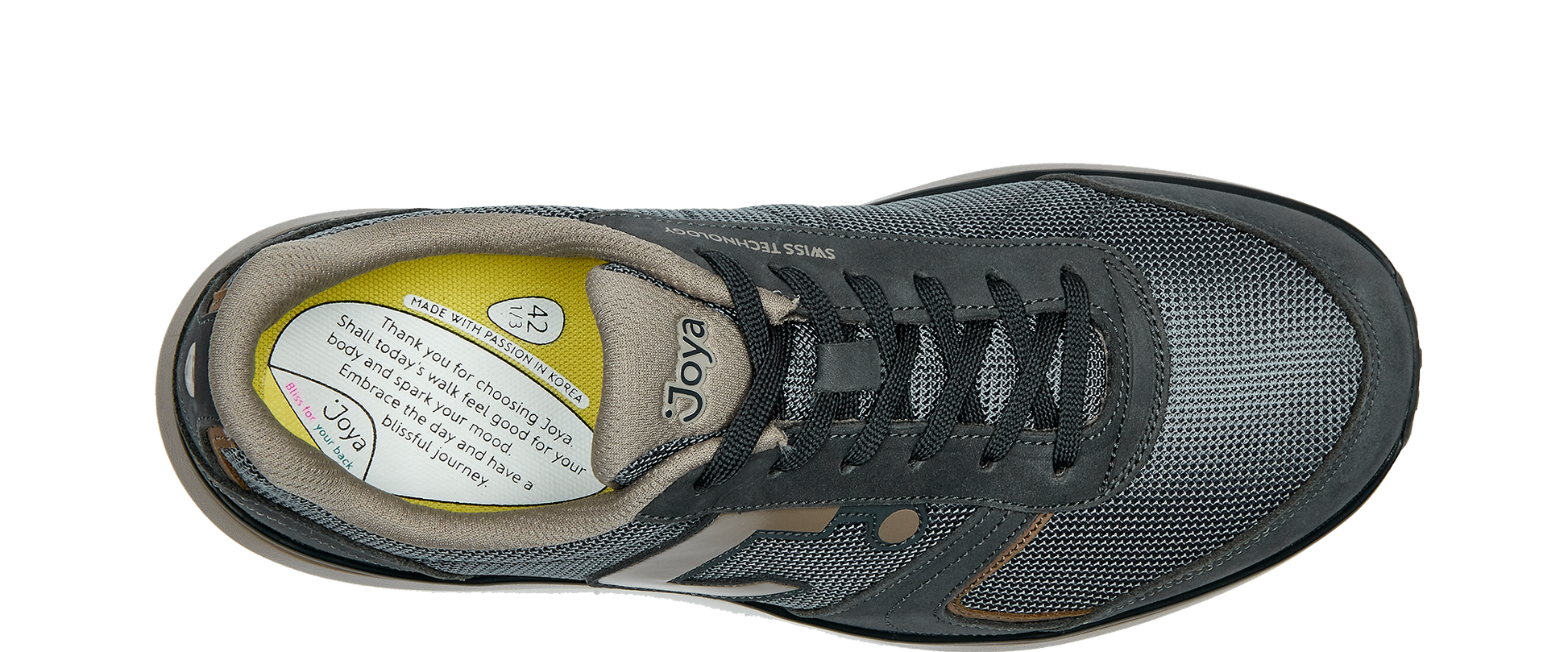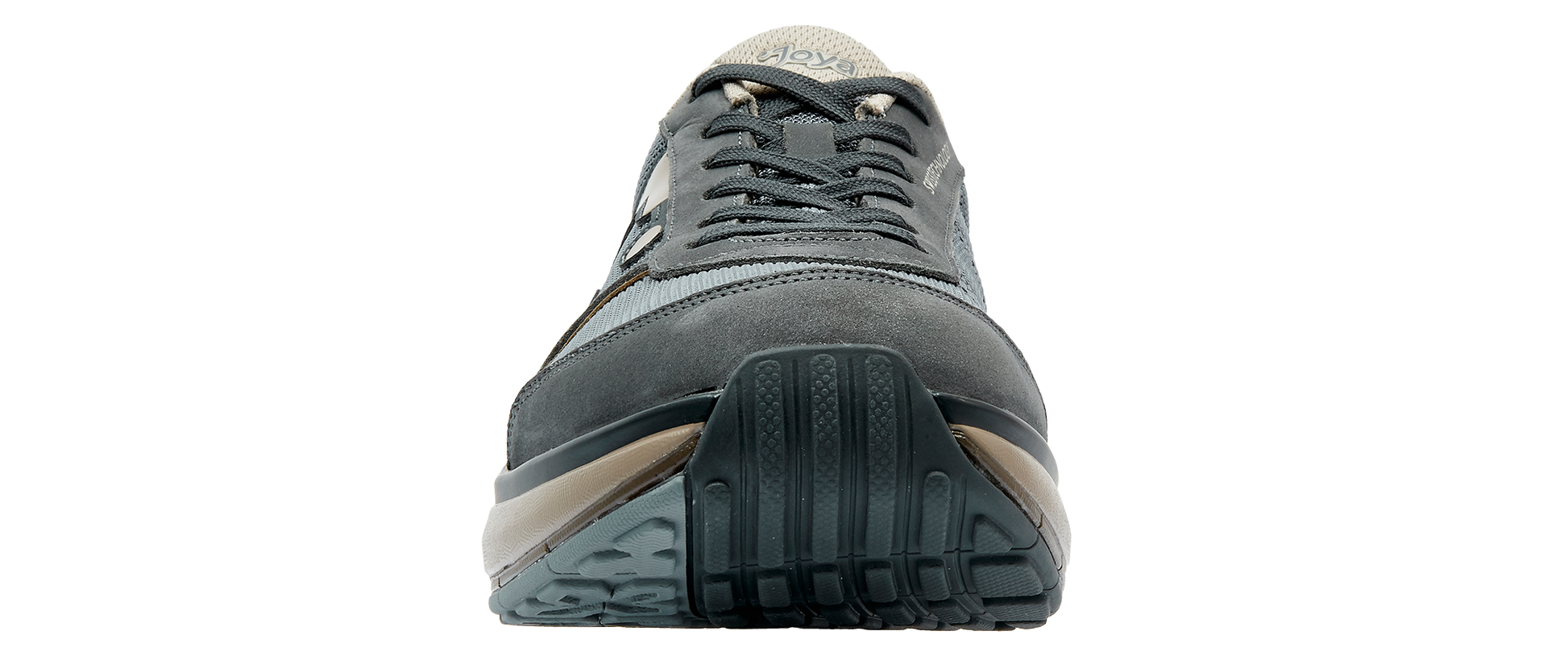 Sportlicher Sneaker mit Obermaterial aus Nubukleder und atmungsaktivem Mesh. Dieser Schuh hat eine weiche Sohle mit einem extra breiten System, das die Anpassung des Schuhs von normaler zu breiter Passform ermöglicht und die Kombination mit orthopädischen Einlagen ermöglicht. Ideal für Menschen mit spezifischen Passformanforderungen.
