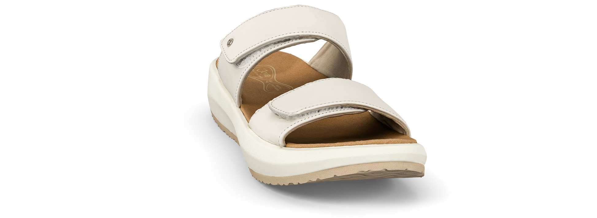 Your everyday comfort best friend. Smooth and elegant full grain leather two straps sandal, with velcro for quick and adjustable fit. Enriched with silky microfiber lining and insole and abrasion resistant lightweight EVA outsole. Featured with the Joya Senso sole technology that ensures excellent cushioning effect and balanced pressure distribution, delivering optimum comfort and relief for your back muscles, joints and feet daily stress.